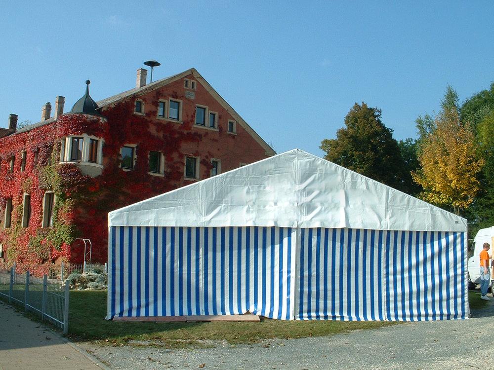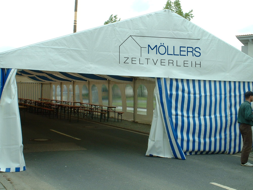 Unsere Zelte mit 8 Metern Breite bieten Platz ab 50 Personen. Alle Zelte sind mit 3-Meter-Modulen flexibel erweiterbar.